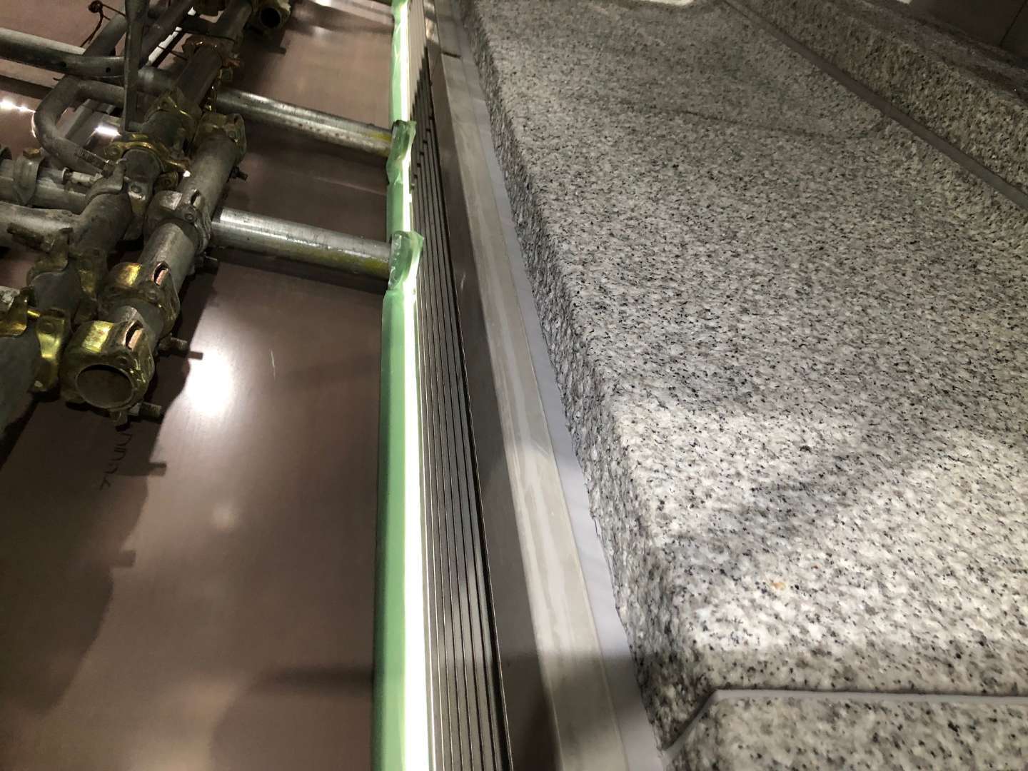 ビル シーリング工事 東京都千代田区 オフィスビルのシーリング工事 御影石のバーナー仕上げは表面がボコボコしていて仕上げづらかったりします。シーリング材の仕上げ面を石の表面より落とすことで目地の線とシーリング表面も綺麗に見せれる工法で施工しています。手間と技術が必要になりますが、細かいところに気を遣うことで建物全体の仕上がりを向上させることができます。 場所 東京都千代田区 1 / 1 次の施工事例 ビル 東京都千代田区 オフィスビル 笠木ジョイントブリッジシール施工